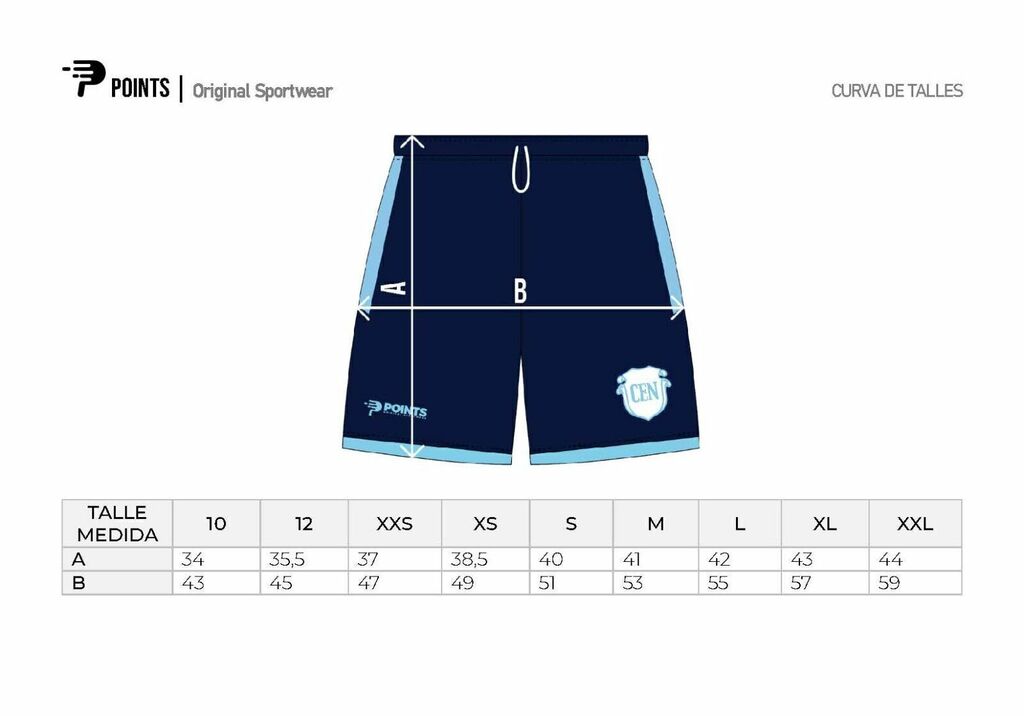 Short azul noche con recortes laterales en celeste. El mismo posee bolsillos laterales y una terminación abierta para un mayor confort.